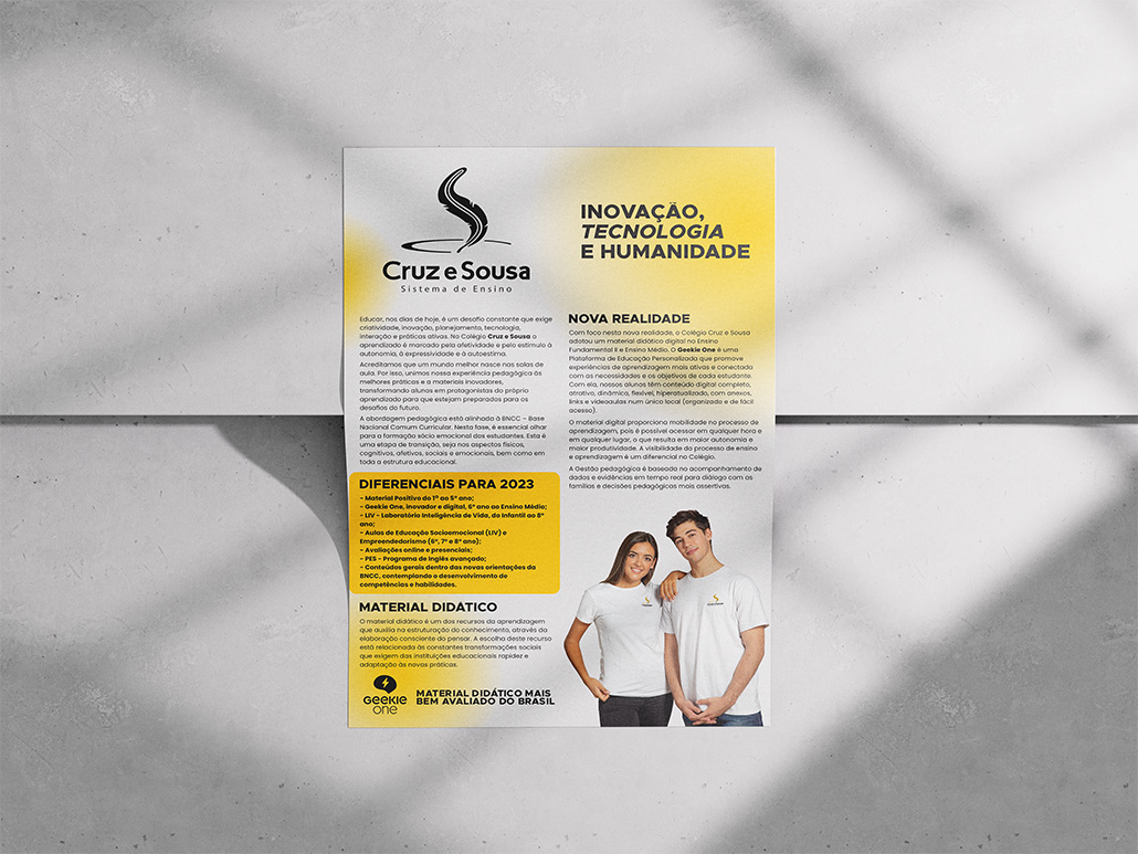 Visite OnlineO Colégio Cruz e Sousa foi criado em 2002 com a proposta de um centro diferenciado de formação de jovens, no qual o conhecimento é aliado a valores como Ética, Justiça Social e Cidadania. Desde então, o Colégio que hoje é referência no Norte da Ilha, tem formado centenas de jovens capacitados e com uma visão cidadã.